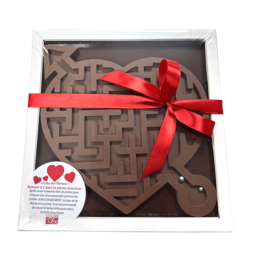 Le jeu de L’amour est un labyrinthe en chocolat au lait supérieur 33,9% de cacao minimum.