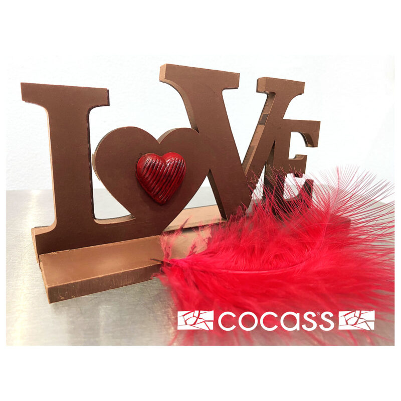 LOVE Chocolat au lait, dans sa boite cadeau transparente.